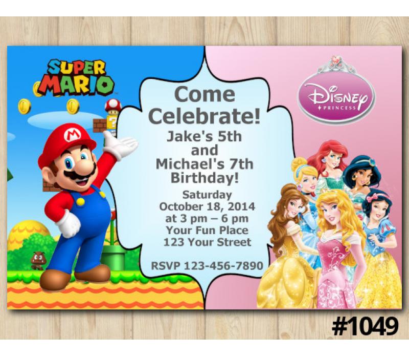 Twin Super Mario and Disney Princesses Invitation | Personalized Digital Card