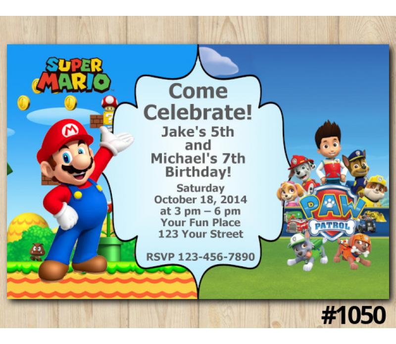 If your household can't agree on whether to save the Mushroom Kingdom or race to the lookout tower, this colorful, cartoon-style digital invitation has you covered. It brings together Super Mario on the left and Paw Patrol on the right—so no one feels left out.