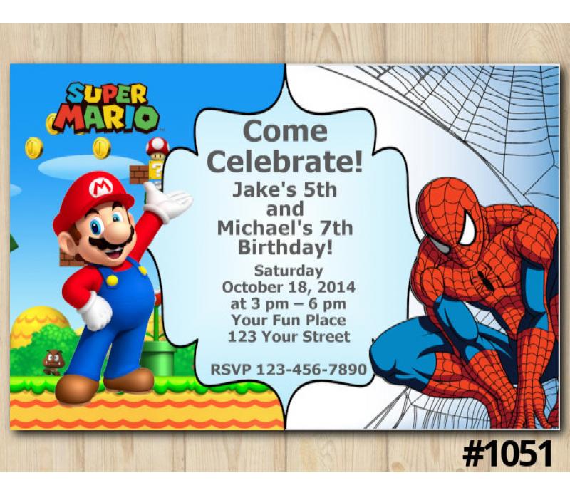 If your kids are torn between jumping on Goombas and swinging through New York, this colorful, comic-book-style digital invitation brings the best of both worlds together. On the left, the Mushroom Kingdom. On the right, the web-slinger himself. And right in the middle? All your party details, ready to customize.